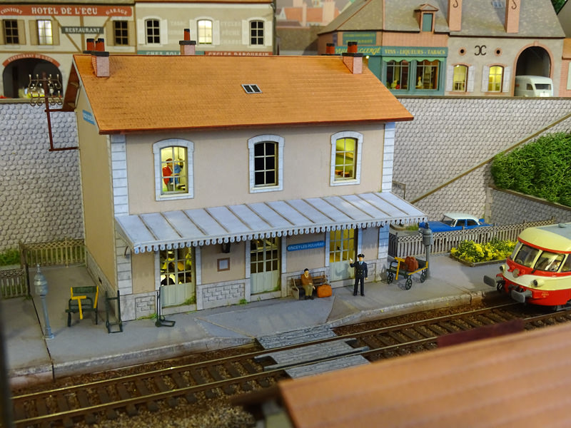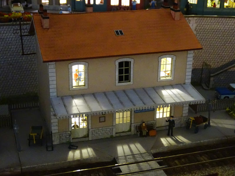 - L’intérieur du rez-de-chaussée (avec comptoir des billets, salles d’attente) est aménagé, meublé et éclairé.